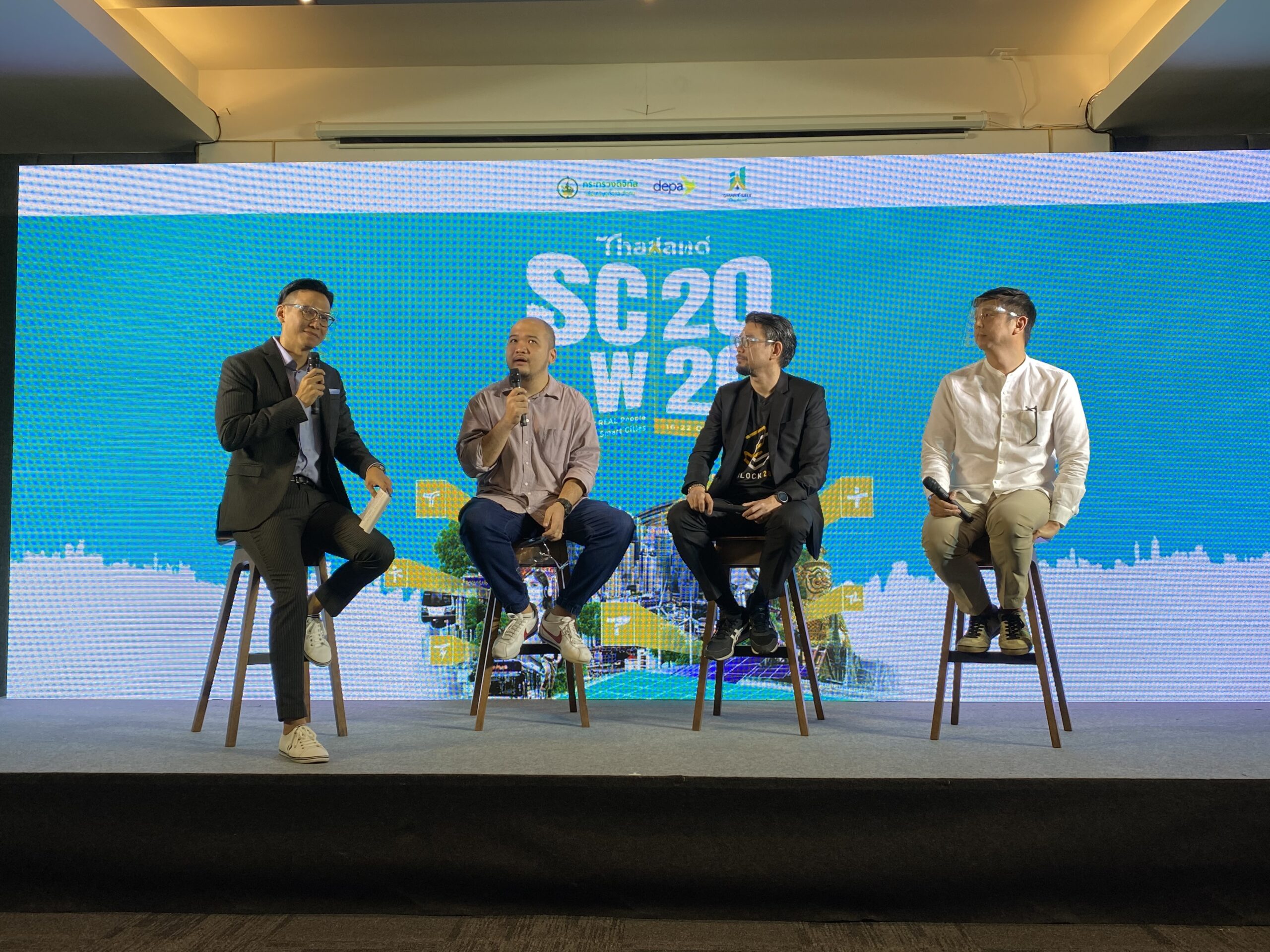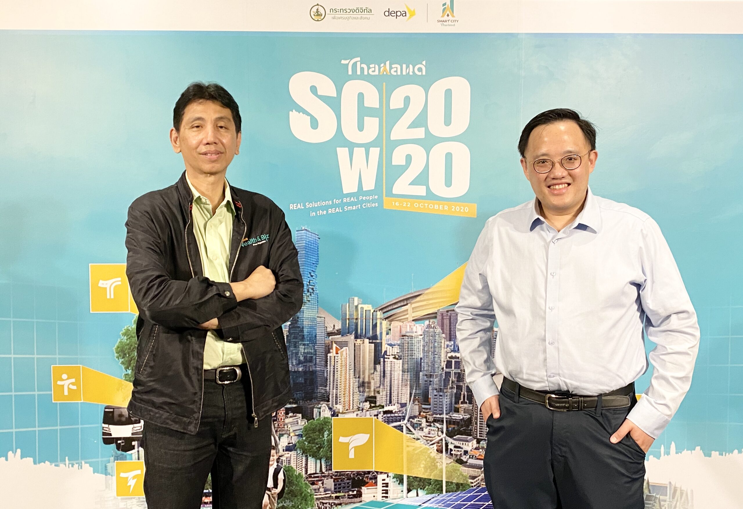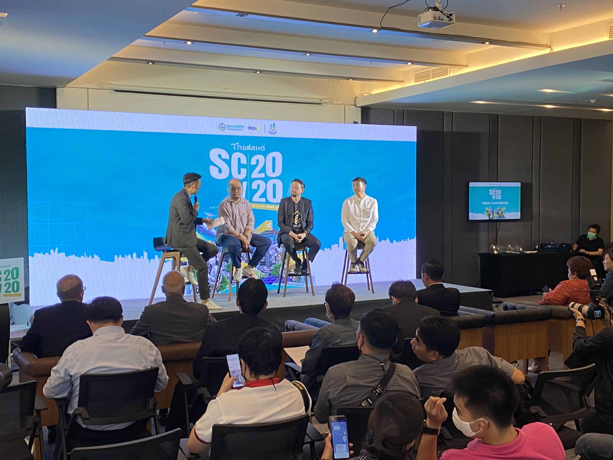 7 ตุลาคม 2563 สำนักงานส่งเสริมเศรษฐกิจดิจิทัล พร้อมภาคีเครือข่าย แถลงข่าวการจัดงาน “Thailand Smart City Week 2020” มหกรรมแสดงเทคโนโลยีด้านการพัฒนาเมืองอัจฉริยะในรูปแบบ Real Digital Event ครั้งแรกของประเทศไทย ที่มาพร้อมแนวคิด REAL Solutions for REAL People in the REAL Smart Cities เดินหน้าเปิดมิติใหม่ในการนำเทคโนโลยีดิจิทัลมาประยุกต์ใช้พัฒนาเมืองอย่างยั่งยืน จุดประกายผู้นำเมืองค้นหาโซลูชันตอบโจทย์เมือง พร้อมดึงประชาชนร่วมเป็นส่วนหนึ่งในการพัฒนาเมืองอัจฉริยะอย่างเท่าเทียม ลดข้อจำกัดด้านเวลาและสถานที่ในการเข้าถึงกิจกรรมผ่านรูปแบบการจัดงานทั้งออนไลน์และออฟไลน์ โดยตั้งเป้าเป็นก้าวสำคัญในการขับเคลื่อนการพัฒนาเมืองอัจฉริยะของไทยและอาเซียน โดยในการแถลงข่าวมีการเสวนา 3 มุมมองจาก 3 นักมองเมือง ได้แก่ ดร.จิตติศักดิ์ ธรรมาภรณ์พิลาศ ผู้ช่วยอธิการบดี จุฬาลงกรณ์มหาวิทยาลัย คุณขวัญชาย ดำรงค์ขวัญ เจ้าของเพจ มนุษย์กรุงเทพฯ คุณฉัตรพงศ์ ชื่นฤดีมล สถาปนิก และผู้ก่อตั้ง CHAT architects ในหัวข้อการเสวนา “Smart City ในแบบที่ใช่”