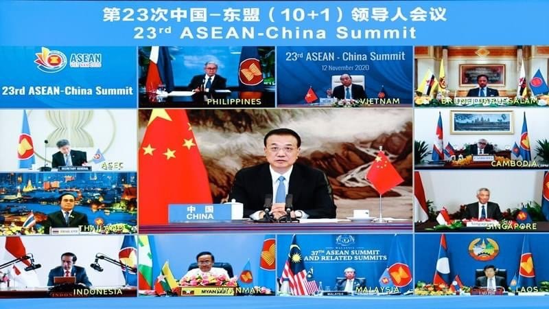 วันที่ 12 พฤศจิกายน การประชุมผู้นำจีน-อาเซียนครั้งที่ 23 ได้จัดขึ้นผ่านระบบวิดีโอคอนเฟอร์เรนซ์ นายหลี่ เค่อเฉียง นายกรัฐมนตรีจีนและผู้นำ 10 ประเทศอาเซียนได้บรรลุความรับรู้ร่วมกันด้านการสานสัมพันธ์ทวิภาคีอย่างกว้างขวาง และประสบผลสำเร็จสำคัญในการร่วมมือเพื่ออนาคตที่สดใสของจีน-อาเซียน