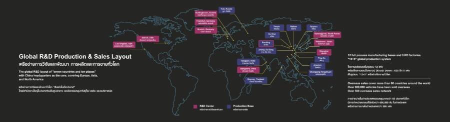 ในปัจจุบัน เกรท วอลล์ มอเตอร์ มีโรงงานผลิตเต็มรูปแบบรวมทั้งสิ้น 12 แห่งทั่วโลกรวมโรงงานที่จังหวัดระยอง ในประเทศไทย และมีโรงงานแบบ KD (Knock Down) อีก 5 แห่งนอกประเทศจีน โดยแต่ละโรงงานจะมีกำลังการผลิต เทคโนโลยีและความโดดเด่นที่แตกต่างกัน เพื่อรองรับการผลิตรถยนต์ในแต่ละประเภทและแต่ละภูมิภาคที่ต่างกัน อาทิ โรงงานอัจฉริยะในเมือง Chongqing ประเทศจีน จะมีหุ่นยนต์อัจฉริยะปฏิบัติการเกี่ยวกับการเชื่อมและพ่นสี เน้นการผลิตรถกระบะ P Series และ HAVAL หรือ โรงงานอัจฉริยะในเมือง Taizhou ที่มีการจัดตั้งสมาร์ทพาร์คเชื่อมโยงระบบข้อมูลอัจฉริยะที่มีการประสานงานอย่างครอบคลุมตั้งแต่การวิจัย การผลิต การจัดหา การตลาด ทรัพยากรบุคคล การเงิน เข้าด้วยกัน และใช้เป็นการฐานการผลิตรถยนต์ ORA Good Cat เป็นหลัก เป็นต้น นอกจากการตั้งฐานการผลิตในภูมิภาคสำคัญต่างๆ ทั่วโลกแล้ว เกรท วอลล์ มอเตอร์ ยังมีเครือข่ายศูนย์วิจัยและพัฒนากว่า 10 แห่ง ใน 7 ประเทศทั่วโลก เพื่อเฟ้นหาและพัฒนาเทคโนโลยีด้านยานยนต์ใหม่ๆเพื่อนำมาประยุกต์ใช้กับการผลิตรถยนต์ให้ทันสมัย ปลอดภัย และเป็นมิตรต่อสิ่งแวดล้อม พร้อมตอบโจทย์ความต้องการของผู้บริโภคได้ดียิ่งขึ้น