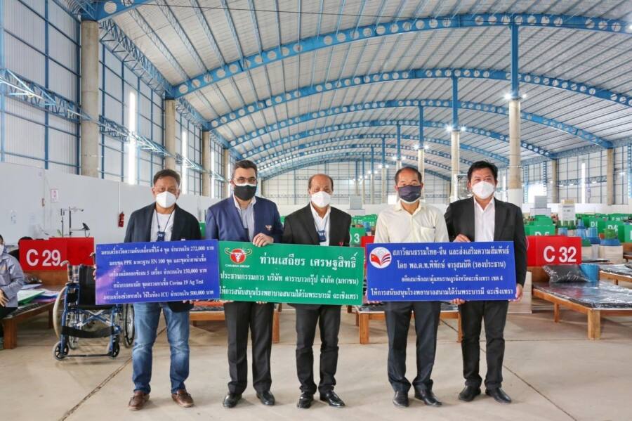 วันจันทร์ที่ 2 สิงหาคม เวลา 10.00 น. พล.ต.ท.พิทักษ์ จารุสมบัติ รองประธานสภาวัฒนธรรมไทย-จีน และส่งเสริมความสัมพันธ์ ร่วมกับบริษัท คาราบาวกรุ๊ป จำกัด (มหาชน) ให้การสนับสนุนโรงพยาบาลสนามใต้ร่มพระบารมี อ.บ้านโพธิ์ จังหวัดฉะเชิงเทรา
