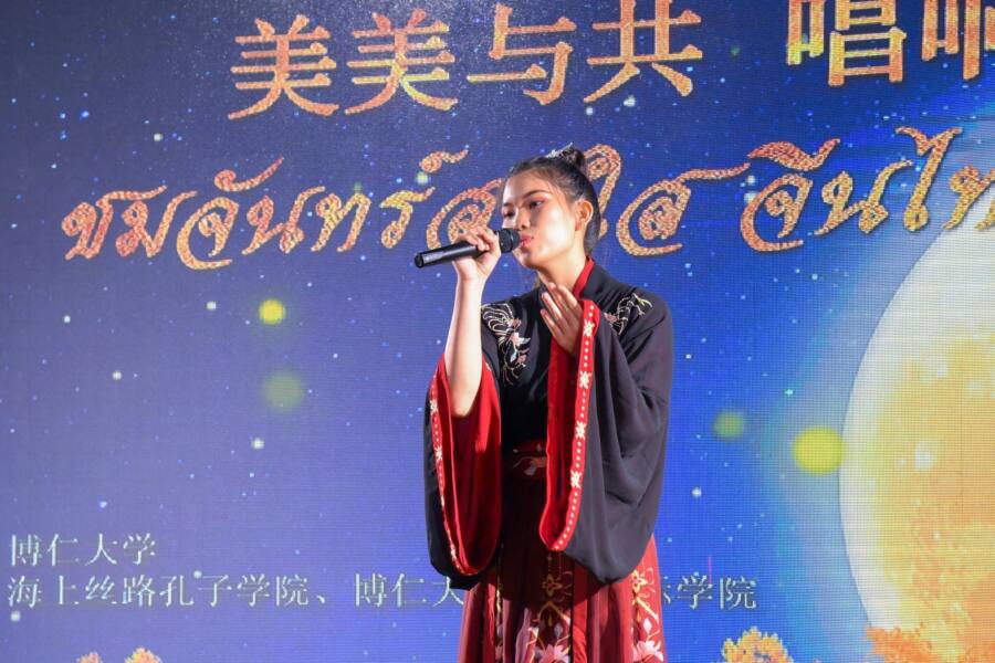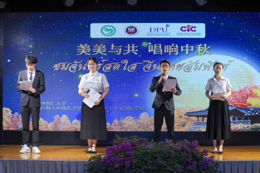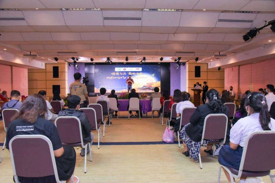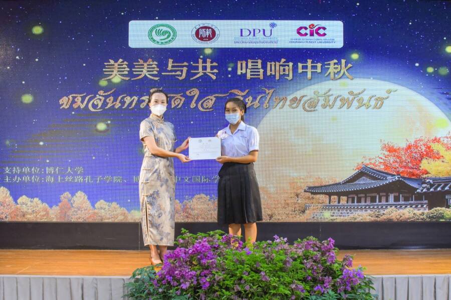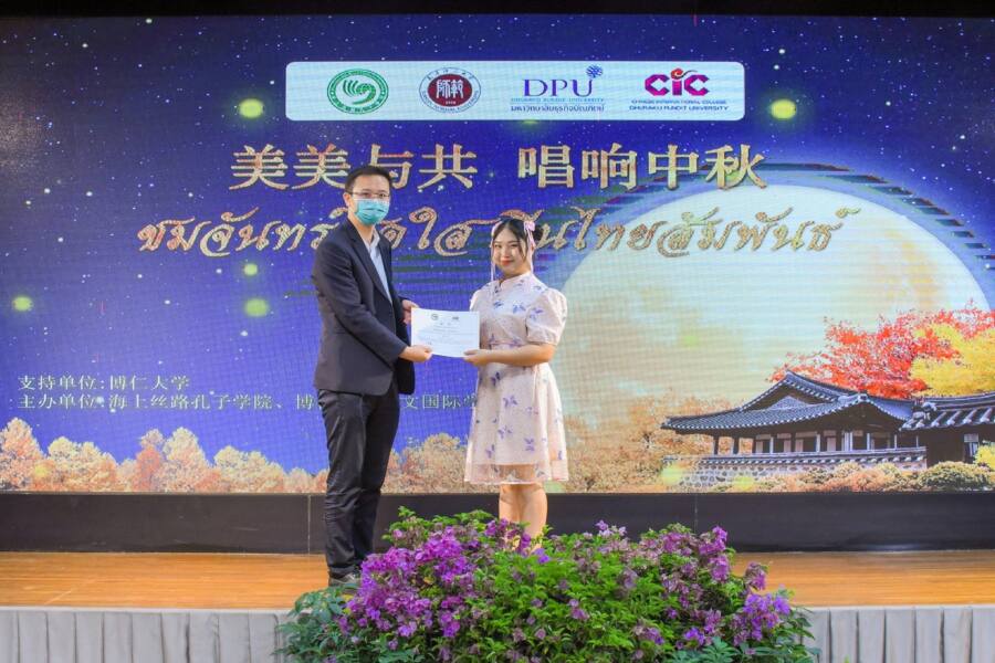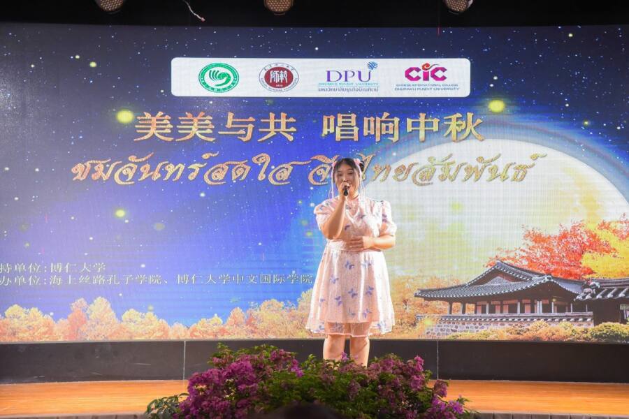 วันพฤหัสบดีที่ 8 กันยายน 2565 สถาบันขงจื่อเส้นทางสายไหมทางทะเล ร่วมกับ วิทยาลัยนานาชาติจีน มหาวิทยาลัยธุรกิจบัณฑิตย์ (DPU) จัดกิจกรรม “ชมจันทร์สดใส จีนไทยสัมพันธ์” ณ ห้องประชุมสนม สุทธิพิทักษ์ มหาวิทยาลัยธุรกิจบัณฑิตย์ ซึ่งเป็นกิจกรรมประกวดร้องเพลงที่มีผู้เข้าแข่งขันกว่า 90 คนจากทั่วประเทศ โดยหลังจากผู้เข้าแข่งขันได้ผ่านการคัดเลือกถึง 2 รอบ มีผู้เข้าแข่งขันที่ผ่านการคัดเลือกเพียง 10 คนได้เข้ารอบชิงชนะเลิศในวันนี้