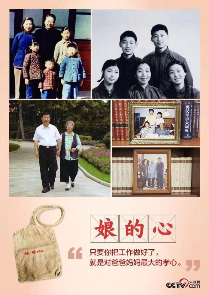 การเติบโตจากครอบครัวที่มีการอบรมสั่งสอนที่ดี สี จิ้นผิงนำประชาชนไว้ในจุดสูงสุดในหัวใจมาโดยตลอด ต่อสู้โดยไม่สนความสุขของตนเพื่อความผาสุกของครอบครัวนับพันนับหมื่นและชีวิตความเป็นอยู่ที่ดีขึ้นเรื่อยๆ ของประชาชนร้อยล้านคน ทำได้จริงไม่ให้ประชาชนผิดหวัง และไม่ทรยศต่อ “หัวใจของแม่”