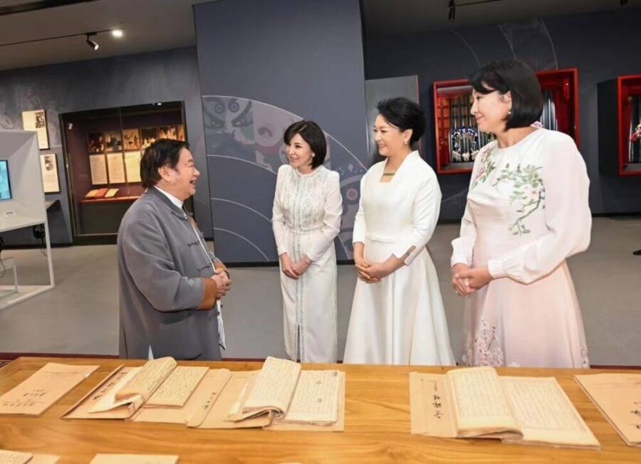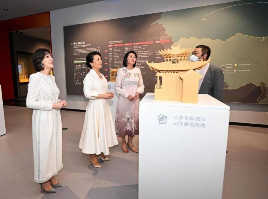 วันที่ 19 พฤษภาคม ศาสตราจารย์เผิง ลี่หยวน ภริยานายสี จิ้นผิง ประธานาธิบดีจีน เชิญนาง Aigul Japarova ภริยาของปธน.คีร์กีซสถาน และนาง Ziroatkhon Hoshimova ภริยาของปธน.อุซเบกิสถาน ที่ร่วมเดินทางมาจีนเพื่อการประชุมสุดยอดจีน-เอเชียกลาง เข้าเยี่ยมชมโรงงิ้วฉินเชียงอี้สูซื่อ แหล่งจัดแสดงงิ้วพื้นเมืองมณฑลส่านซี