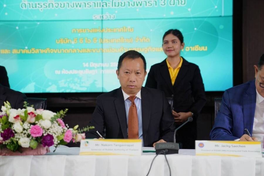 กยท. ผนึกกำลัง C.C.I.C และ SMEs ASEAN ลงนาม MOU ธุรกิจยางพารา ไทย-จีน ผสานเครือข่ายผลักดันมาตรฐาน สร้างความเชื่อมั่นยางพาราไทย