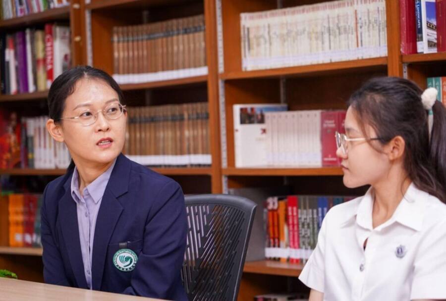 “มาเรียนที่นี่ฟ้ารู้สึกตัวเองโชคดีมาก เพราะได้เจออาจารย์ที่สอนสนุก แล้วที่นี่ก็มีนักศึกษาจีนเจ้าของภาษามาเรียนกันเยอะที่สุดในประเทศไทย ทำให้จากเดิมที่คิดว่าภาษาจีนยากมาก แต่กลับกลายเป็นความรู้สึกที่ไม่กดดัน ยิ่งเรียนก็ยิ่งมีความสุข และไม่รู้สึกท้อหรือเบื่อเลย”