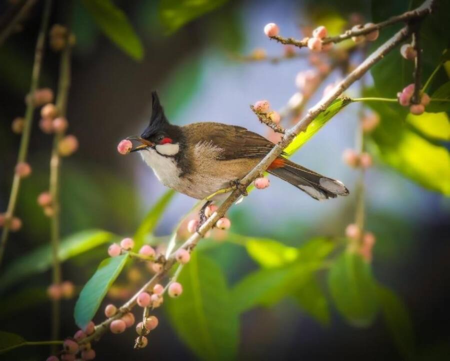 Having lived in the Guangdong-Hong Kong-Macao Greater Bay Area for nearly 20 years, Helis is very familiar with the development and changes there. In another of his works, which was taken in a park in Guangzhou’s Huangpu district, a red-whiskered bulbul is enjoying a sumptuous berry breakfast.