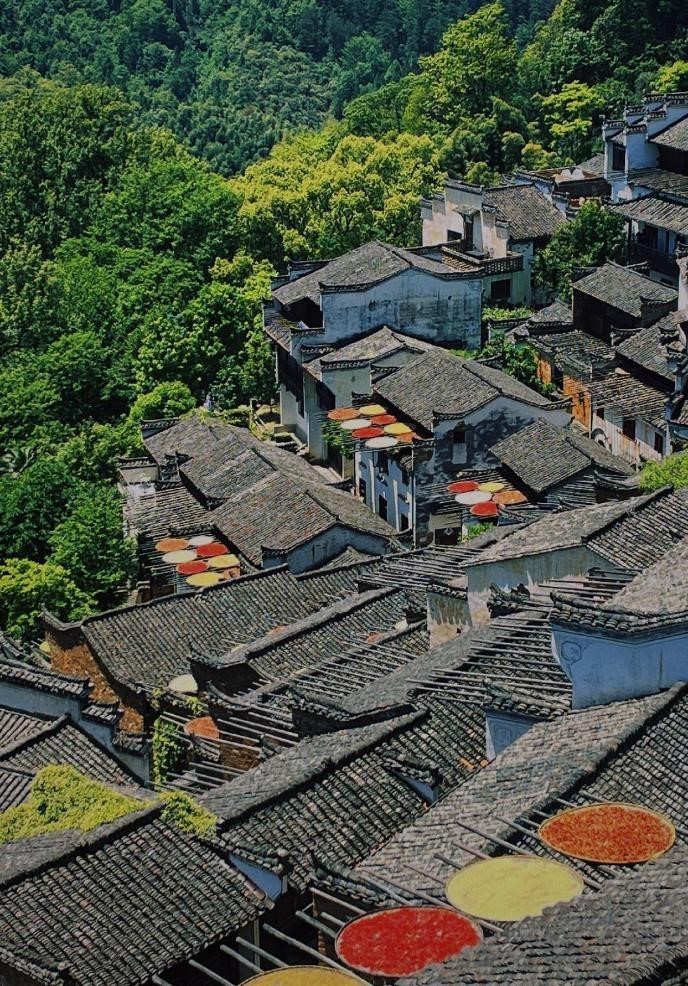 In Huangling village, Wuyuan county, east China’s Jiangxi province, the local government has promoted ecological tourism development by leveraging ecological resources and other advantages, embarking on a path of integrated industrial development. Huangling is a hilly village, so villagers often dry grains on rooftops. The assorted crops drying on the round winnowing baskets resemble a series of opened umbrellas, forming a lively and pleasing scene.