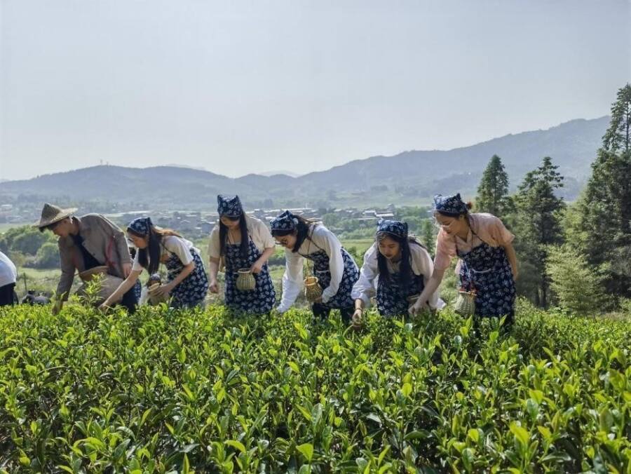 Chinese and foreign students from universities in Fujian province pick tea in a tea garden on the Wuyi Mountain. The photo was taken by Alexander William, an Indonesian student from the Chinese Language and Culture College of Huaqiao University.