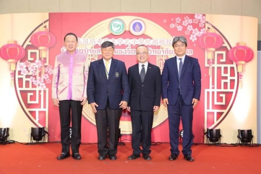 จึงได้มีการจัดตั้ง “สถาบันขงจื่อ” ขึ้น ณ อาคารสิริวิทยา คณะศิลปศาสตร์ มหาวิทยาลัยมหิดล ศาลายา ซึ่งในพิธีเปิดป้ายสถาบันฯ 26 มิถุนายน 2566 ที่ผ่านมา ได้รับเกียรติจาก นายอู๋ จื้ออู่อัครราชทูต ณ สถานเอกอัครราชทูตสาธารณรัฐประชาชนจีนประจำราชอาณาจักรไทย พร้อมด้วย ประธานสภาหอการค้าแห่งประเทศไทย “สนั่น อังอุบลกุล” ร่วมเป็นสักขีพยาน โดยมองว่าประเทศไทยเป็นจุดยุทธศาสตร์ที่สำคัญของชาวจีนโพ้นทะเล ดังที่มีประชากรชาวจีนโพ้นทะเลเป็นจำนวนมากอาศัยอยู่ในย่านการค้าสำคัญเช่นที่ “เยาวราช” ซึ่งอาจนำไปสู่หัวข้อการศึกษาเพื่อการอนุรักษ์และสืบสานวัฒนธรรมจีนดั้งเดิม ที่ว่าด้วยขนบธรรมเนียมประเพณีด้านอาหาร การแต่งกาย ความเชื่อ การเคารพสิ่งศักดิ์สิทธิ์ และวันสำคัญต่างๆ ฯลฯ ซึ่งจะเป็นการกระชับความสัมพันธ์ระหว่างไทย-จีนให้แน่นแฟ้นยิ่งขึ้นสืบไป