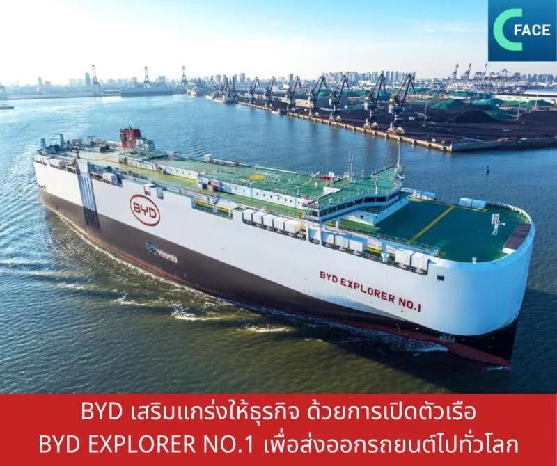 ในปีนี้ BYD ยังเสริมความแข็งแกร่งให้ธุรกิจของตัวเอง ด้วยการเปิดตัวเรือขนส่งรถยนต์ เพื่อส่งออกรถยนต์รุ่นต่างๆ ของ BYD ไปทั่วโลก BYD เรียกเรือขนส่งรถยนต์ลำนี้ว่า “BYD EXPLORER NO.1” ถือเป็นเรือขนส่งรถยนต์ลําแรกของบริษัท ผลิตโดยอู่ต่อเรือจีน โดยเพิ่งจะมีการส่งมอบเรือและเดินทางไปยุโรป เมื่อวันที่ 9 มกราคมที่ผ่านมา