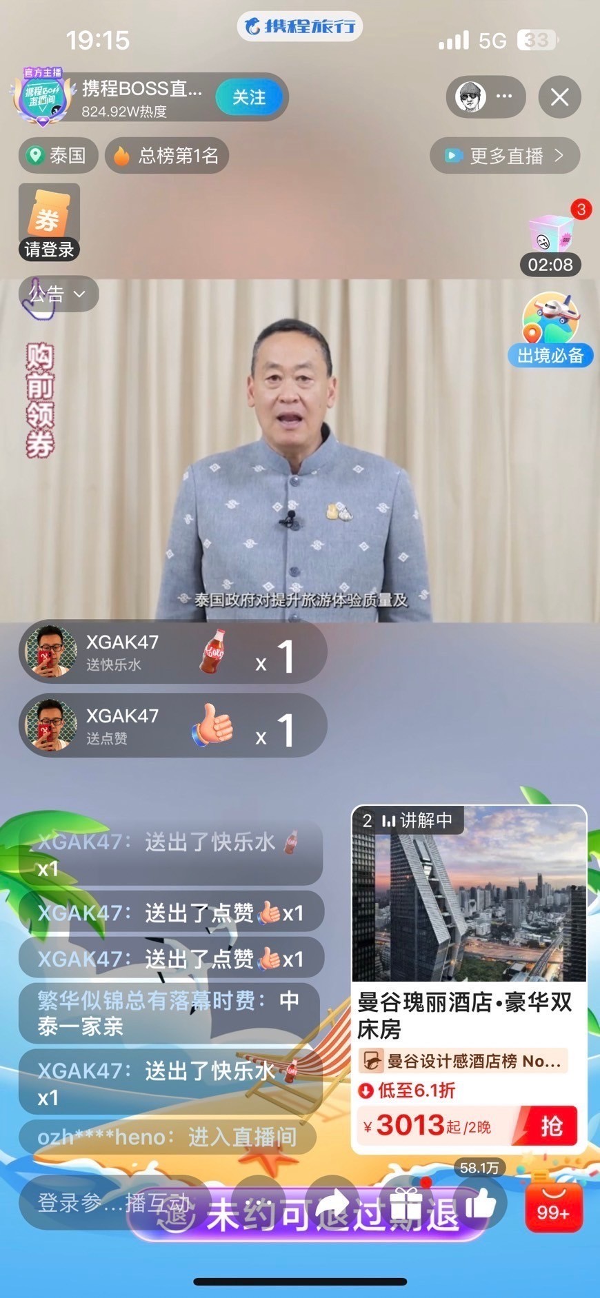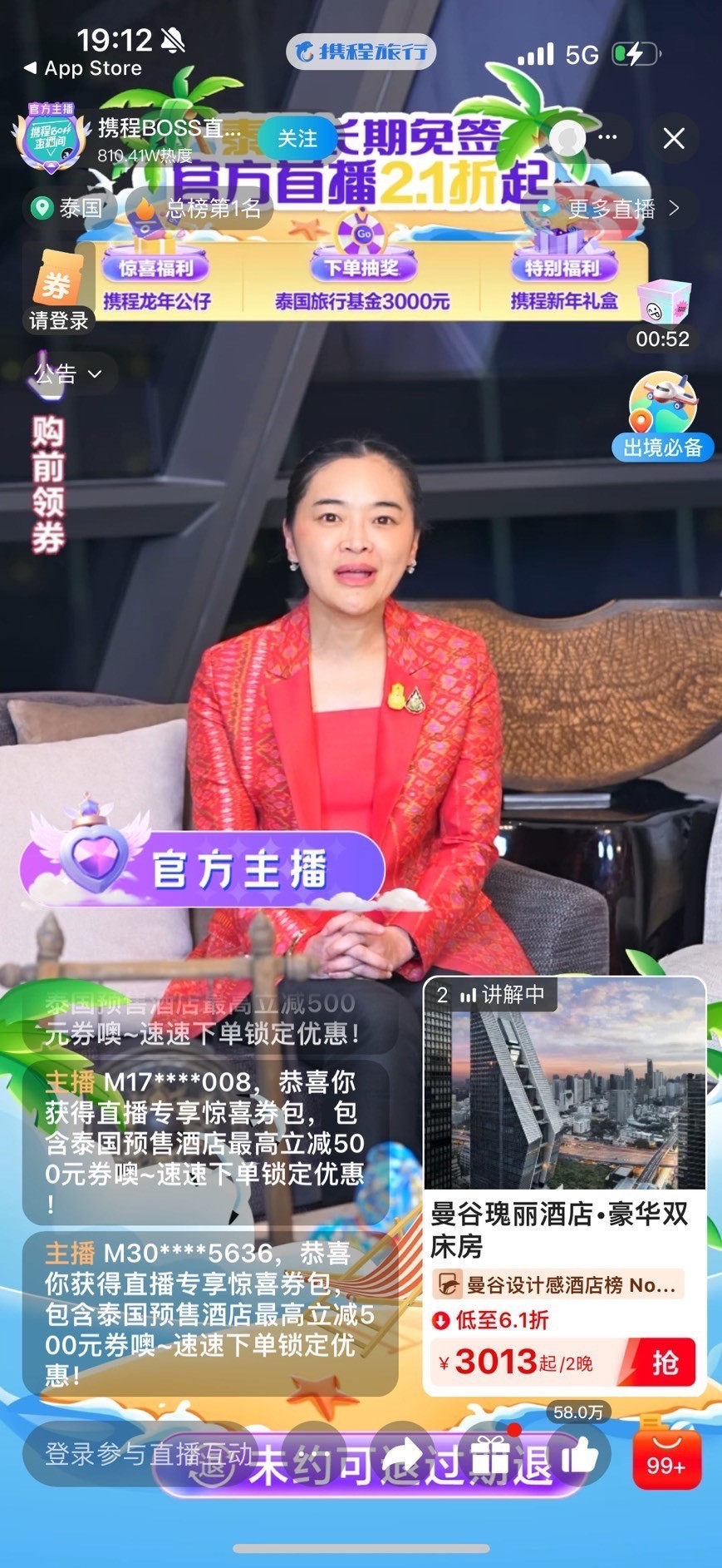 ครั้งแรกในไทย ‘Super World Tour BOSS LIVE’ กระทรวงการท่องเที่ยวและกีฬา โดย ททท. จับมือ Trip.com เปิดไลฟ์สตรีม ‘Super World Tour BOSS LIVE’ ขายสินค้าและบริการด้านการท่องเที่ยวโปรโมทไทยเป็น จุดหมายปลายทางของนักท่องเที่ยวจีน