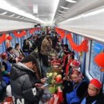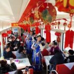 ตั้งแต่วันที่ 26 มกราคม เป็นต้นมา ช่วง “ชุนยวิ่น”หรือ การเดินทางกลับบ้านเพื่อฉลองเทศกาลตรุษจีนเปิดฉากขึ้น ภายในเวลา 40 วัน ผู้คนเดินทางจะมีถึง 9,000 ล้านครั้ง สำหรับชาวจีนทุกคน การเดินทางกลับบ้านย่อมจะเป็นการเดินทางที่เต็มไปด้วยความอบอุ่น ภายในตู้รถไฟต่าง ๆ ก็มักจะติดภาพเหนียนฮว่า แขวนสิ่งของต่าง ๆ เพิ่มบรรยากาศต้อนรับเทศกาลตรุษจีน อีกทั้งยังจัดกิจกรรมต่างๆ ระหว่างเจ้าหน้าที่การรถไฟและผู้โดยสาร เช่น การเขียนตัวอักษร “福” การเขียนกลอนคู่คำอวยพร เป็นต้น เพิ่มบรรยากาศเทศกาลตรุษจีน