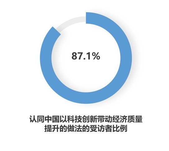 เมื่อเร็วๆ นี้ สถานีโทรทัศน์ CGTN ในสังกัดของสถานีวิทยุและโทรทัศน์ส่วนกลางของจีนได้ร่วมมือกับมหาวิทยาลัยประชาชนจีนจัดการสำรวจเกี่ยวกับการพัฒนาเศรษฐกิจของจีน โดย มีผู้ตอบแบบสอบถาม 87.1% ในผู้ตอบแบบสอบถามทั้งหมดจากทั่วโลกชื่นชมแนวทางของจีนในการปรับปรุงคุณภาพเศรษฐกิจด้วยนวัตกรรมทาง