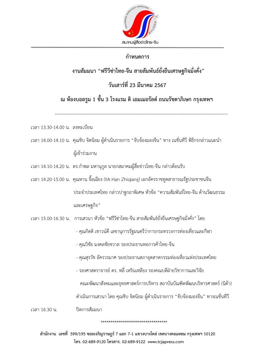 ในงานสัมมนาในหัวข้อ “ฟรีวีซ่าไทย-จีน สายสัมพันธ์ยั่งยืนเศรษฐกิจมั่งคั่ง”
