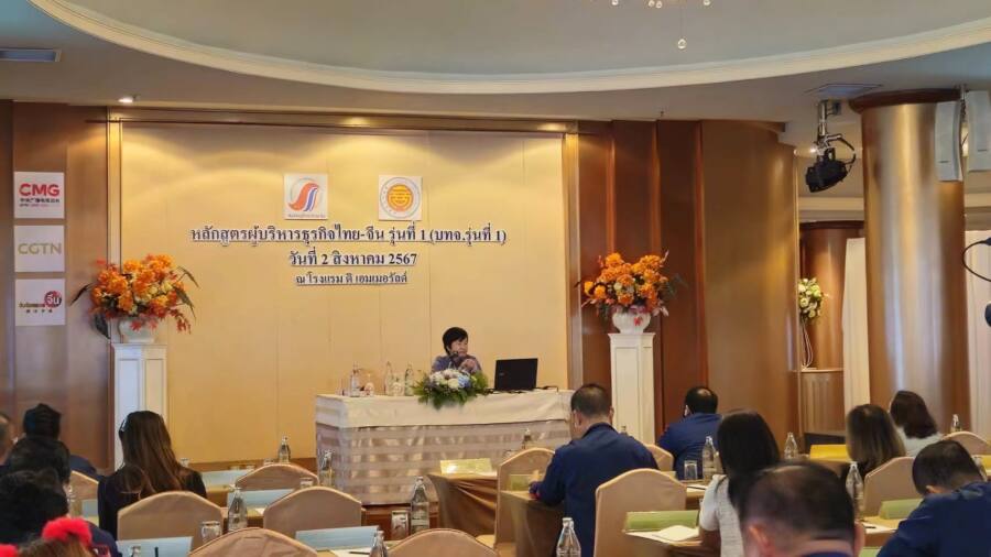สมาคมผู้สื่อข่าวไทย-จีน ร่วมกับ China Media Group หรือ CMG ได้จัดการเสวนาในชุด “โอกาสของโลกจากการปฏิรูปอย่างลึกของจีนในยุคใหม่” ใน หลักสูตรผู้บริหารธุรกิจไทย-จีน”หรือ บทจ.รุ่นที่ 1 ซึ่งเป็นหลักสูตรที่จัดโดยสมาคมผู้สื่อข่าวไทย-จีน ภายใต้ความร่วมมือจากหอการค้าไทย-จีน และสถานเอกอัครราชทูตสาธารณรัฐประชาชนจีนประจำประเทศไทย โดยมีรายการจับจ้องมองจีน และ China Media Group เป็นผู้ร่วมสนับสนุนหลักโดย โดยได้เชิญ นางสาวณัฐิยา สุจินดา รองอธิบดี กรมส่งเสริมการค้าระหว่างประเทศ ให้เกียรติเป็นผู้บรรยายในหัวข้อ โอกาสการลงทุนไทย-จีน ทั้งในด้านการนำเข้า ส่งออกระหว่างสองประเทศ เมื่อวันที่ 2 สิงหาคม 2567 ที่ผ่านมา ณ โรงแรมดิเอมเมอรัลด์ กรุงเทพมหานคร