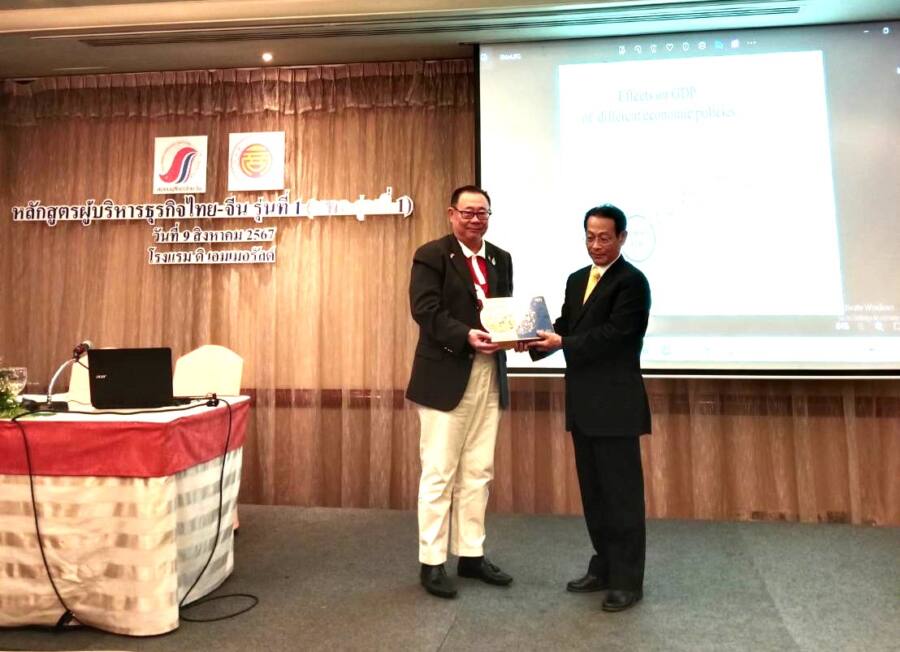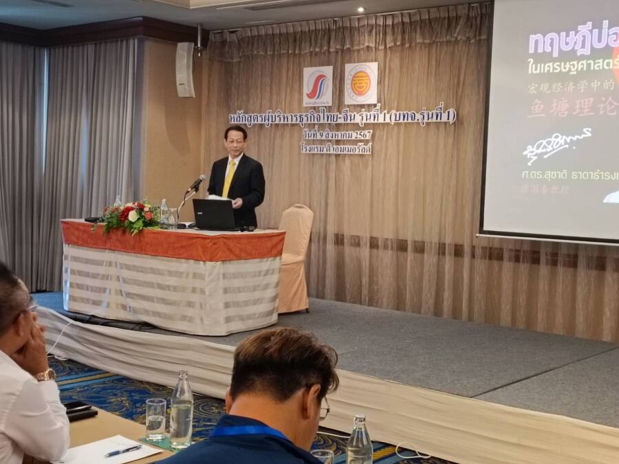 เมื่อวันศุกร์ที่ 9 สิงหาคม 2567 ที่ผ่านมา ศาสตราจารย์ ดร.สุชาติ ธาดาดำรงเวช นักเศรษฐศาสตร์ อดีตรัฐมนตรีช่วยว่าการกระทรวงการคลัง ได้ให้เกียรติบรรยายในหัวข้อ “การบริหารระบบเศรษฐกิจ” แก่ผู้เรียนในหลักสูตร”ผู้บริหารธุรกิจไทย-จีน” หรือ บทจ. รุ่น1 ซึ่งจัดโดยสมาคมผู้สื่อข่าวไทย-จีน ภายใต้ความร่วมมือจากหอการค้าไทย-จีน และสถานเอกอัครราชทูตสาธารณรัฐประชาชนจีน ประจำประเทศไทย ณ รร.ดิเอมเมอรัลด์ รัชดาภิเษก กรุงเทพฯ โดยมีรายการ จับจ้องมองจีน และ China Media Group ของจีน เป็นผู้ร่วมสนับสนุน