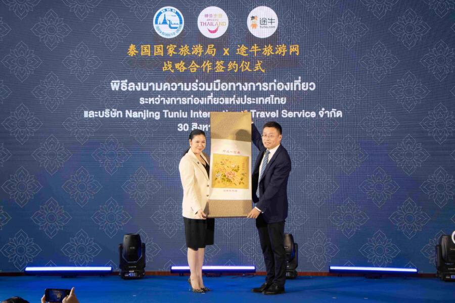 นางสาวฐาปนีย์ เกียรติไพบูลย์ ผู้ว่าการ ททท. กล่าวว่า ความร่วมมือกับ TUNIU ในวันนี้ จะช่วยขับเคลื่อนการพัฒนาเศรษฐกิจดิจิทัลของประเทศไทย เพิ่มความสะดวกสบายในการเดินทางท่องเที่ยวของนักท่องเที่ยวจากตลาดจีน ตลอดจนยกระดับประสบการณ์ทางการท่องเที่ยว เพื่อตอกย้ำให้นักท่องเที่ยวจีนตัดสินใจเลือกประเทศไทยเป็นจุดหมายปลายทางในการเดินทางท่องเที่ยว โดย ททท. จะร่วมกับ TUNIU ในการส่งเสริมตลาดนักท่องเที่ยวจากสาธารณรัฐประชาชนจีน ด้วยการแลกเปลี่ยนข้อมูลระหว่างกัน เพื่อศึกษาข้อมูลเชิงลึกในด้านการบริโภคและพฤติกรรมการใช้จ่ายของนักท่องเที่ยวจีนกลุ่มเป้าหมาย ตลอดจนร่วมกันทำกิจกรรมส่งเสริมตลาดให้เข้าถึงกลุ่มตลาดนักท่องเที่ยวจีนทุกระดับ เพื่อนำเสนอสินค้าและบริการทางการท่องเที่ยวได้ตรงตามความต้องการ พร้อมทั้งชูจุดขายของประเทศไทยทั้งในเรื่องความสวยงามของแหล่งท่องเที่ยวและวัฒนธรรม ตลอดจนส่งเสริมภาพลักษณ์ด้านความปลอดภัย อันจะนำไปสู่การเพิ่มทั้งการใช้จ่ายทางการท่องเที่ยวและจำนวนนักท่องเที่ยวคุณภาพสู่อุตสาหกรรมท่องเที่ยวไทย