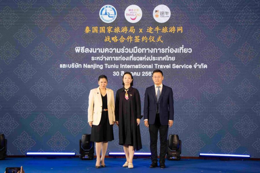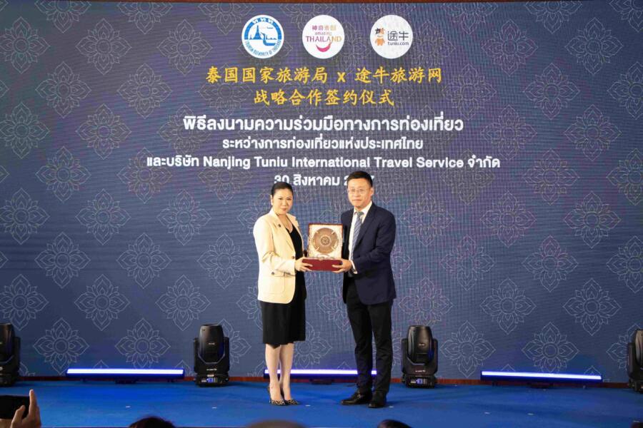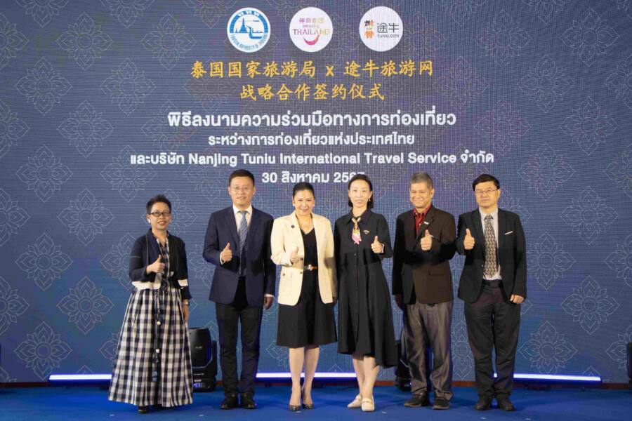 วันนี้ (30 สิงหาคม 2567) นางสาวฐาปนีย์ เกียรติไพบูลย์ ผู้ว่าการการท่องเที่ยวแห่งประเทศไทย (ททท.) และ Mr. Donald Yu ประธานเจ้าหน้าที่บริหาร บริษัท NANJING TUNIU INTERNATIONAL TRAVEL SERVICE หรือ TUNIU ผู้ให้บริการแพลตฟอร์มท่องเที่ยวอย่างครบวงจรและได้รับความนิยมอย่างมากในตลาดจีน ร่วมลงนามหนังสือแสดงเจตจำนง (LOI) พันธมิตรทางธุรกิจ มุ่งยกระดับประสบการณ์ท่องเที่ยวไทยของนักท่องเที่ยวจีนระดับคุณภาพ พร้อมเสริมภาพลักษณ์เชิงบวกด้านความปลอดภัย โดยมี Mrs. Chang Yumeng ที่ปรึกษาแผนกวัฒนธรรมประจำสถานเอกอัครราชทูตสาธารณรัฐประชาชนจีนประจำราชอาณาจักรไทยร่วมเป็นสักขีพยานการลงนาม ณ อาคาร ททท. สำนักงานใหญ่ กรุงเทพฯ