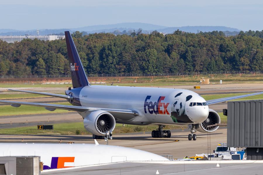 (241015) — DULLES (U.S.), Oct. 15, 2024 (Xinhua) — A special crate holding one giant panda is unloaded at the Dulles International Airport near Washington, D.C., the United States, on Oct. 15, 2024. A pair of giant pandas, Bao Li and Qing Bao, arrived at Washington, D.C. on Tuesday, after an approximately 19-hour trans-Pacific trip from Sichuan Province in southwest China. A dedicated “FedEx Panda Express” Boeing 777F aircraft landed at the Dulles International Airport near Washington, D.C. at around 10:00 a.m. local time (1400 GMT). (Photo by Yang Shuang/Xinhua)(241015) — DULLES (U.S.), Oct. 15, 2024 (Xinhua) — An airplane transporting giant pandas arrives at the Dulles International Airport near Washington, D.C., the United States, on Oct. 15, 2024. A pair of giant pandas, Bao Li and Qing Bao, arrived at Washington, D.C. on Tuesday, after an approximately 19-hour trans-Pacific trip from Sichuan Province in southwest China. A dedicated “FedEx Panda Express” Boeing 777F aircraft landed at the Dulles International Airport near Washington, D.C. at around 10:00 a.m. local time (1400 GMT). (Xinhua/Hu Yousong)(241015) — DULLES (U.S.), Oct. 15, 2024 (Xinhua) — An airplane transporting giant pandas arrives at the Dulles International Airport near Washington, D.C., the United States, on Oct. 15, 2024. A pair of giant pandas, Bao Li and Qing Bao, arrived at Washington, D.C. on Tuesday, after an approximately 19-hour trans-Pacific trip from Sichuan Province in southwest China. A dedicated “FedEx Panda Express” Boeing 777F aircraft landed at the Dulles International Airport near Washington, D.C. at around 10:00 a.m. local time (1400 GMT). (Xinhua/Hu Yousong)(241015) — DULLES (U.S.), Oct. 15, 2024 (Xinhua) — A worker transfers a special crate holding one giant panda at the Dulles International Airport near Washington, D.C., the United States, on Oct. 15, 2024. A pair of giant pandas, Bao Li and Qing Bao, arrived at Washington, D.C. on Tuesday, after an approximately 19-hour trans-Pacific trip from Sichuan Province in southwest China. A dedicated “FedEx Panda Express” Boeing 777F aircraft landed at the Dulles International Airport near Washington, D.C. at around 10:00 a.m. local time (1400 GMT). (Photo by Yang Shuang/Xinhua)