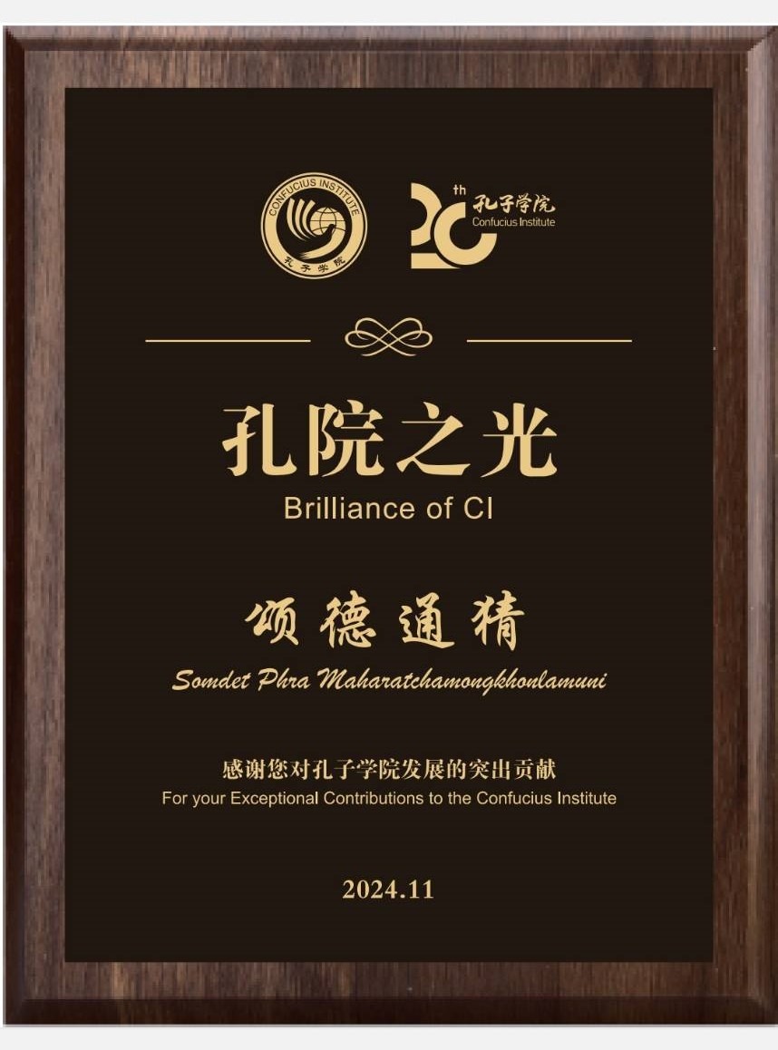 นายอู๋ เหยียน (Mr. Wu Yan) รัฐมนตรีช่วยว่าการกระทรวงศึกษาธิการ สาธารณรัฐประชาชนจีน ได้ถวายรางวัล “ผู้จุดประกายแห่งสถาบันขงจื่อ” (Brilliance of CI) แด่ สมเด็จพระมหารัชมงคลมุนี ประธานคณะกรรมการบริหารสถาบันขงจื่อเส้นทางสายไหมทางทะเล กรรมการมหาเถรสมาคม เจ้าคณะใหญ่หนกลาง ในการประชุมภาษาจีนโลก ประจำปี พ.ศ. 2567 เมื่อวันเสาร์ที่ 16 พฤศจิกายน พ.ศ. 2567 ณ ศูนย์ประชุมแห่งชาติ กรุงปักกิ่ง สาธารณรัฐประชาชนจีน