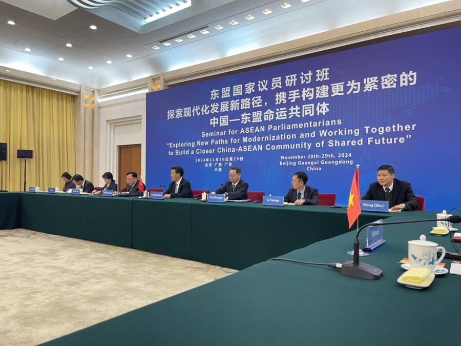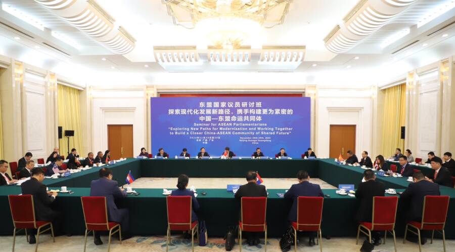 อนึ่ง คณะผู้แทนรัฐสภาไทยฯ พร้อมด้วยผู้เข้าร่วมการสัมมนาฯ ทั้งหมด มีกำหนดเข้าร่วมการประชุมสัมมนาและกิจกรรมศึกษาดูงาน ระหว่างวันที่ 20-29 พฤศจิกายน 2567 ณ กรุงปักกิ่ง เขตปกครองตนเองกว่างซีจ้วง และนครกวางโจว ซึ่งจะเป็นการเปิดโอกาสให้ผู้เข้าร่วมการสัมมนาฯ ได้อภิปรายข้อคิดเห็นและนำเสนออย่างเป็นรูปธรรมเกี่ยวกับความก้าวหน้าในการดำเนินนโยบายต่าง ๆ ของจีน ที่ได้นำเสนอตลอดห้วงของการสัมมนาฯ รวมทั้งแนวทางและโอกาสในการพัฒนาความร่วมมือระหว่างเพื่อบรรลุเป้าหมายการเป็นประชาคมจีน – อาเซียนที่เข้มแข็งและพร้อมรับมือกับความท้าทายในอนาคต