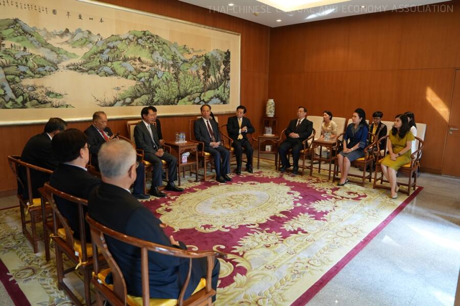 ก่อนเริ่มงานปาฐกถา ได้มีการหารือกันระหว่าง ดร.โภคิน พลกุล นายกสมาคมวัฒนธรรมและเศรษฐกิจไทย-จีน Mr.Ji Bingxuan CAFIU President and the Vice Chairman of the Standing Committee of the 13th National People’s Congress และ Mr.Han zhiqiang เอกอัครราชทูตสาธารณรัฐประชาชนจีน ประจำประเทศไทย และคณะวิทยากร ณ ห้องรับรอง
