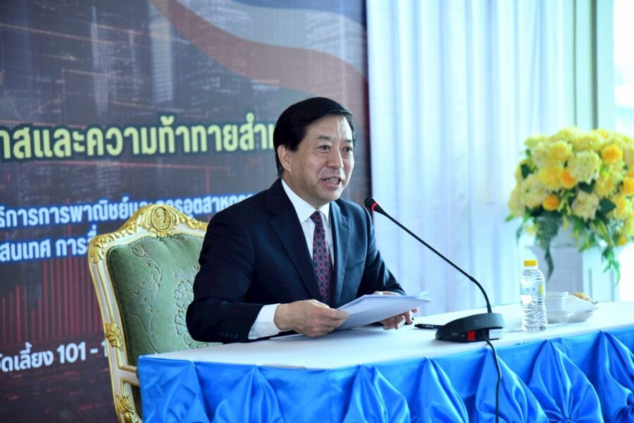 สวัสดีทุกท่านครับ ผมมีความยินดีและรู้สึกเป็นเกียรติอย่างยิ่งที่ได้รับเชิญให้เข้าร่วมสัมมนาในวันนี้ ทุกท่านให้ความสำคัญและติดตามสถานการณ์ระหว่างประเทศและการพัฒนาของประเทศไทย และความสัมพันธ์จีน-ไทยมาโดยตลอด ผมยินดีที่จะแบ่งปันทัศนะมุมมองของผมกับท่านทั้งหลายและหวังว่าจะได้รับรู้ความคิดเห็นเชิงลึกเพิ่มเติมจากท่านด้วย หากท่านถามว่าปัญหาอะไรที่น่ากังวลที่สุดในโลกขณะนี้ ปัญหาที่กำลังทำให้เกิดความไม่สงบไปทั่วโลก ผมคิดว่าผู้คนร้อยละร้อยจะให้คำตอบเดียวกัน นั่นก็คือ การใช้มาตรการภาษีศุลกากรในทางที่ผิดของรัฐบาลทรัมป์แห่งสหรัฐอเมริกา สิ่งที่ทุกคนอยากฟังอยากรู้จากผมมากที่สุดคือจีนคิดอย่างไรเกี่ยวกับเรื่องนี้ และจะทำอย่างไรกับเรื่องนี้? นี่เป็นโอกาสที่ดีที่ผมอยากจะพูดคุยอย่างตรงไปตรงมากับท่านทั้งหลายในประเด็นนี้พอดี