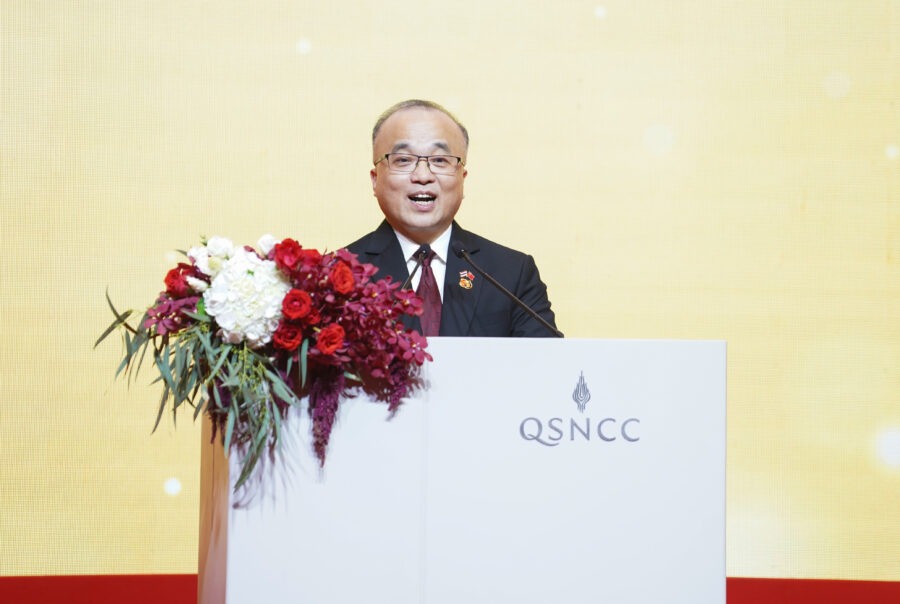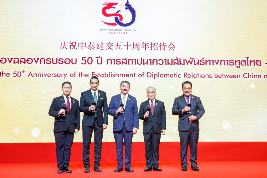 บรรยากาศภายในงานเลี้ยงรับรองซึ่งจัดขึ้นเพื่อร่วมเฉลิมฉลองวาระสำคัญ “ปีทองแห่งมิตรภาพไทย – จีน” เนื่องในโอกาสครบรอบ 50 ปีแห่งการสถาปนาความสัมพันธ์ทางการทูตระหว่างราชอาณาจักรไทยกับสาธารณรัฐประชาชนจีน เป็นไปอย่างอบอุ่นและเปี่ยมด้วยมิตรไมตรี โดยมีนายมาริษ เสงี่ยมพงษ์ รัฐมนตรีว่าการกระทรวงการต่างประเทศของไทย และนายอู๋ จื้ออู่ อุปทูตรักษาการแห่งสถานเอกอัครราชทูตจีนประจำประเทศไทย ให้เกียรติร่วมเป็นเจ้าภาพต้อนรับผู้เข้าร่วมงานจากหลากหลายภาคส่วนทั้งภาครัฐ ภาคเอกชน และองค์กรระหว่างประเทศ ภายในงานเลี้ยงดังกล่าว ทั้งสองฝ่ายได้เน้นย้ำถึงความสำคัญยิ่งของการธำรงและส่งเสริมความเป็นหุ้นส่วนความร่วมมือเชิงยุทธศาสตร์รอบด้านระหว่างไทยและจีน ซึ่งความร่วมมืออันแน่นแฟ้นนี้ไม่เพียงมีบทบาทสำคัญต่อการเสริมสร้างความมั่นคงทางการเมืองและเศรษฐกิจของทั้งสองประเทศเท่านั้น แต่ยังเป็นรากฐานสำคัญในการธำรงสันติภาพ ความมั่นคง และเสถียรภาพในภูมิภาคเอเชียตะวันออกเฉียงใต้และภูมิภาคโดยรอบ ในโอกาสนี้ ทั้งสองประเทศยังแสดงเจตจำนงร่วมกันที่จะสานต่อความร่วมมือดังกล่าวให้แน่นแฟ้นยิ่งขึ้น เพื่อประโยชน์สุขของประชาชนทั้งสองชาติและเพื่อการพัฒนาที่ยั่งยืนของภูมิภาคโดยรวม