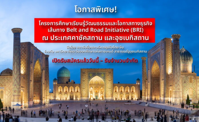 เปิดรับสมัคร! โครงการศึกษาเรียนรู้วัฒนธรรมและโอกาสทางธุรกิจ ตามเส้นทาง Belt and Road Initiative (BRI) ณ ประเทศคาซัคสถาน และสาธารณรัฐอุซเบกิสถาน จัดโดย สถาบันสื่อและบริหารธุรกิจไทย-จีน ร่วมกับ มหาวิทยาลัยตะวันออกศึกษาแห่งทาชเคนต์ สาธารณรัฐอุซเบกิสถาน