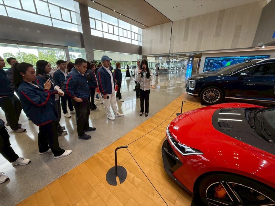 เมื่อวันที่ 11 สิงหาคม พ.ศ. 2568 สมาชิกหลักสูตรผู้บริหารรุ่นใหม่ธุรกิจไทย-จีน รุ่นที่ 2 (บทจ. Young Executive Program 2) ได้เดินทางไปเยี่ยมชม GAC Aion New Energy Automobile ณ นครกวางโจว สาธารณรัฐประชาชนจีน เพื่อศึกษาดูงานและแลกเปลี่ยนความรู้เกี่ยวกับเทคโนโลยีด้านยานยนต์ไฟฟ้าและยานยนต์อัจฉริยะ โดย GAC Aion เป็นบริษัทในเครือของบริษัท กว่างโจว ออโตโมบิล กรุ๊ป จำกัด (Guangzhou Automobile Group Co., Ltd. หรือ GAC Group) ซึ่งมุ่งเน้นการพัฒนารถยนต์พลังงานไฟฟ้า (EV) และเทคโนโลยีการขับขี่อัจฉริยะ จนก้าวขึ้นเป็นหนึ่งในผู้ผลิต EV ชั้นนำของประเทศจีนในปัจจุบัน