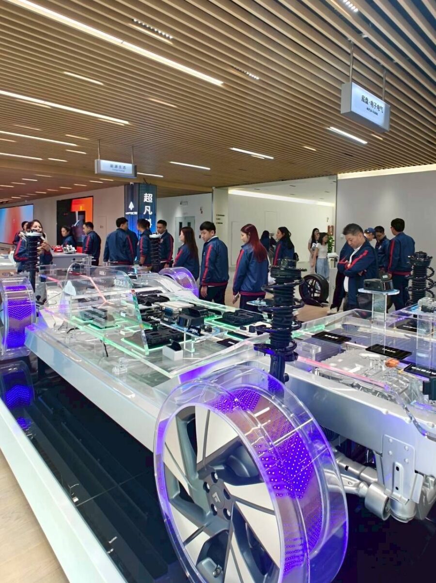 คณะฯ ได้รับการบรรยายสรุปและเยี่ยมชมพื้นที่จัดแสดงนวัตกรรม รวมถึงสายการผลิตที่ทันสมัย โดยได้ชมรถยนต์รุ่นต่างๆ ของ Aion และเทคโนโลยีที่โดดเด่น เช่น แพลตฟอร์ม AEP 3.0 ที่ออกแบบมาสำหรับรถ EV โดยเฉพาะ และเทคโนโลยี Magazine Battery ซึ่งผ่านการทดสอบด้านความปลอดภัยขั้นสูงด้วยการยิงทะลุแบตเตอรี่โดยที่แบตเตอรี่ไม่เกิดการติดไฟ นอกจากนี้ยังได้เยี่ยมชมสายการประกอบหลักที่ใช้หุ่นยนต์ระบบอัตโนมัติ รวมถึงสายการผลิตรถซูเปอร์คาร์ Hyper SSR ที่มีอัตราเร่งจาก 0-100 กิโลเมตรต่อชั่วโมง ภายในเวลาเพียง 2.3 วินาที