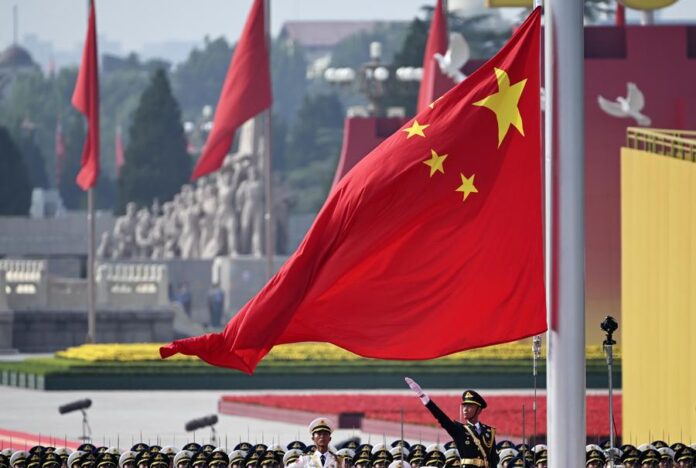 (แฟ้มภาพซินหัว : ทหารเชิญธงชาติจีนขึ้นสู่ยอดเสาระหว่างการชุมนุมใหญ่บริเวณจัตุรัสเทียนอันเหมิน ใจกลางกรุงปักกิ่งของจีนเนื่องในวาระครบรอบ 80 ปี ชัยชนะในสงครามประชาชนจีนต่อต้านการรุกรานของญี่ปุ่น และสงครามต่อต้านลัทธิฟาสซิสต์โลก วันที่ 3 ก.ย. 2025)
