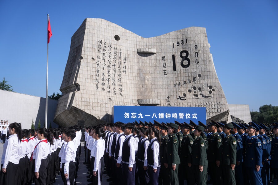 ประชาชนนับร้อยคน ซึ่งรวมถึงทหารผ่านศึกและครอบครัว รวมตัวกันที่ลานพิพิธภัณฑ์ประวัติศาสตร์ 9.18 (9.18 Historical Museum) ในเมืองเสิ่นหยาง มณฑลเหลียวหนิงทางตะวันออกเฉียงเหนือของจีน เพื่อรำลึกและสดุดีผู้ที่ต่อสู้ในสงครามประชาชนจีนต่อต้านการรุกรานของญี่ปุ่น