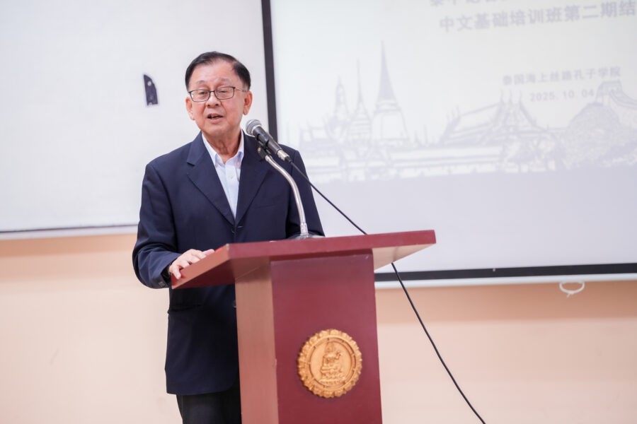 อาจารย์พูลศักดิ์ ประณุทนรพาล ที่ปรึกษาอธิการบดีอาวุโส มหาวิทยาลัยธุรกิจบัณฑิตย์ (DPU) ในฐานะเลขาธิการและกรรมการบริหารสถาบันขงจื่อเส้นทางสายไหมทางทะเล เปิดเผยในพิธีปิดการอบรมภาษาจีนสำหรับสื่อมวลชน ว่า รู้สึกชื่นชมความมุ่งมั่นของผู้เข้าอบรมทุกคนที่แบ่งเวลาในตารางงานอันแน่นขนัดมาพัฒนาทักษะภาษาจีนอย่างต่อเนื่อง จนเห็นพัฒนาการที่ชัดเจนตลอดหลักสูตร โดยบทบาทของสถาบันขงจื่อ และ ห้องเรียนขงจื่อ ถือเป็นกลไกการศึกษาภาษาจีนและวัฒนธรรมที่กระจายอยู่ทั่วโลก รวมถึงหลายจังหวัดในประเทศไทย โดยมีพันธกิจหลักคือ “สอนภาษา–เชื่อมวัฒนธรรม–เปิดโลกทัศน์” ร่วมกับสถาบันเจ้าภาพในครั้งนี้ คือมหาวิทยาลัยธุรกิจบัณฑิตย์ สถาบันขงจื่อฯ DPU ครบรอบ 10 ปีในปีนี้ และจะเดินหน้าขยายความร่วมมือเชิงวิชาการและวัฒนธรรมให้กว้างขวางยิ่งขึ้น