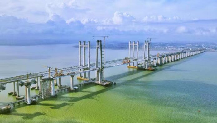 โดยรถไฟความเร็วสูงฝูโจว – เซียะเหมิน เป็นรถไฟความเร็วสูงข้ามทะเลสายแรกในจีน เริ่มจากนครฝูโจวทางตอนเหนือถึงเมืองเซียะเหมินและเมืองจางโจวทางตอนใต้ของมณฑลฝูเจี้ยน ซึ่งเป็นสายหลักที่มีความยาวรวม ๒๗๗.๔๒ กิโลเมตร และออกแบบความเร็วไว้ที่ ๓๕๐ กิโลเมตรต่อชั่วโมง ในโครงการควบคุมหลักของสะพานข้ามทะเลอ่าวเฉวียนโจว โดยมีความยาวทั้งหมด ๒๐.๒๘๗ กิโลเมตร และช่วงสะพานข้ามทะเล ยาว ๘.๙๖ กิโลเมตร เป็นสะพานแขวนสายเคเบิลที่มีเสาคู่และระนาบคู่รวมทั้งคานเหล็กผสมคอนกรีต เป็นสะพานรถไฟความเร็วสูงข้ามทะเลแห่งแรกในจีน