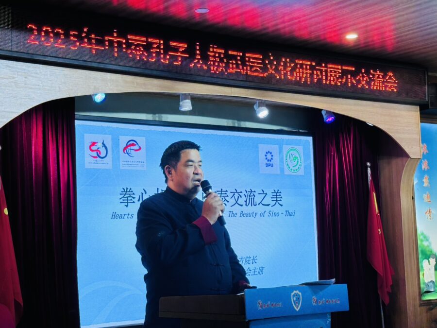 อาจารย์เอกรัตน์ จันทร์รัฐิติกาล ผู้อำนวยการสถาบันขงจื่อเส้นทางสายไหมทางทะเลแห่งประเทศไทย และผู้แทนฝ่ายไทย ขึ้นปาฐกถาในหัวข้อ “หัวใจแห่งวิทยายุทธ์ประสานเป็นหนึ่ง : ความงดงามแห่งการแลกเปลี่ยนวัฒนธรรมไทย–จีน” โดยเน้นแนวคิดการหลอมรวมระหว่าง “พลังและปัญญา” ของวิทยายุทธตะวันออกกับมิตรภาพอันยั่งยืนของสองอารยธรรม โดยได้นำเสนอผลงานการนำปรัชญามวยไท่จี๋มาบูรณาการเข้ากับการสร้างสรรค์ผลงานต่างๆเช่น การจัดแสดงดนตรีบูรณาการฟ้าดินคน , การคิดค้นหลักสูตรInterdisciplinary Taijiที่นำเสนอแนวทางการนำมวยไท่จี๋มาใช้ในชีวิตประวัน และการถ่ายทอดวิทยายุทธจีนอย่างต่อเนื่องในประเทศไทยและต่างประเทศให้กับผู้เรียนกว่า 5,000 คน