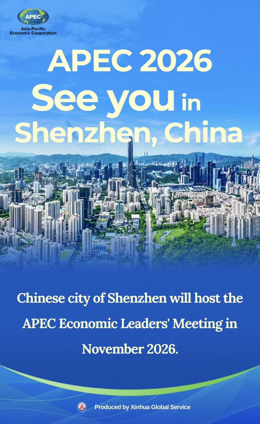 วันเสาร์ (1 พ.ย.) สีจิ้นผิง ประธานาธิบดีจีน กล่าวว่าเมืองเซินเจิ้นของจีนจะเป็นเจ้าภาพจัดการประชุมผู้นำเขตเศรษฐกิจเอเปคในเดือนพฤศจิกายน 2026 ระหว่างพิธีส่งมอบตำแหน่งประธานเอเปคในการประชุมผู้นำเขตเศรษฐกิจเอเปค ครั้งที่ 32 ณ เมืองคยองจูของเกาหลีใต้ โดยนี่จะเป็นครั้งที่ 3 ที่จีนเป็นเจ้าภาพจัดการประชุมนี้