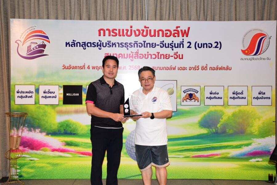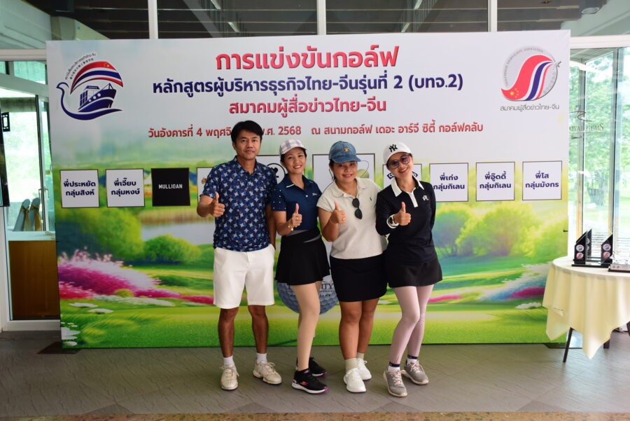 กิจกรรมสมาคมฯ ประมวลภาพ งานการแข่งขันกอล์ฟ หลักสูตรผู้บริหารธุรกิจไทย-จีน รุ่นที่ 2 (บทจ.2) 5 พฤศจิกายน 2025 3 FacebookTwitterWhatsAppTelegramLINE ประมวลภาพ งานการแข่งขันกอล์ฟ หลักสูตรผู้บริหารธุรกิจไทย-จีน รุ่นที่ 2 (บทจ.2) โดย คณะผู้เรียนในหลักสูตรของสมาคมผู้สื่อข่าวไทย-จีน และ สถาบันสื่อและบริหารธุรกิจไทย-จีน เมื่อวันที่ 4 พฤศจิกายน 2568 ณ สนาม เดอะ อาร์จี ซิตี้ กอล์ฟคลับ