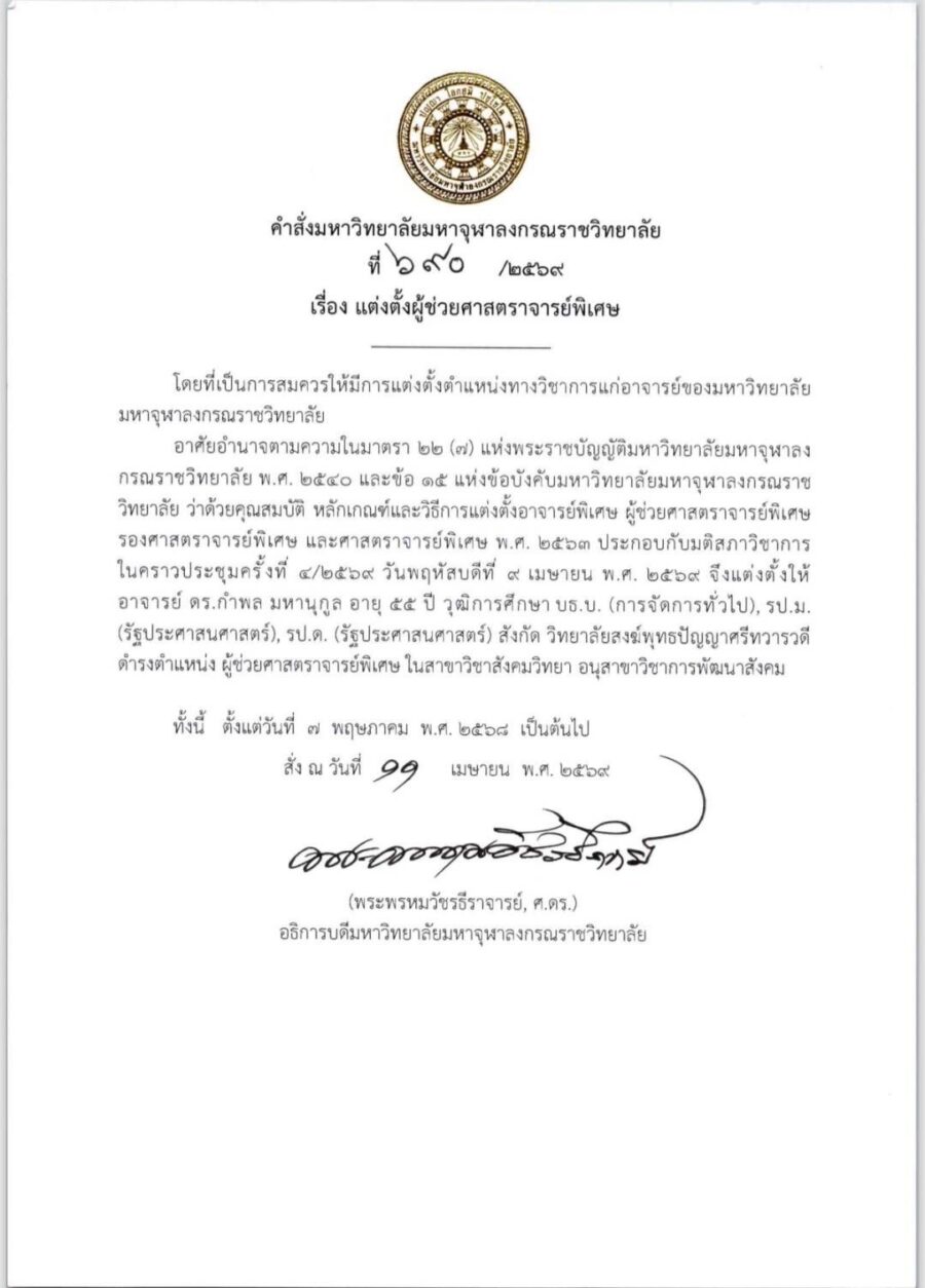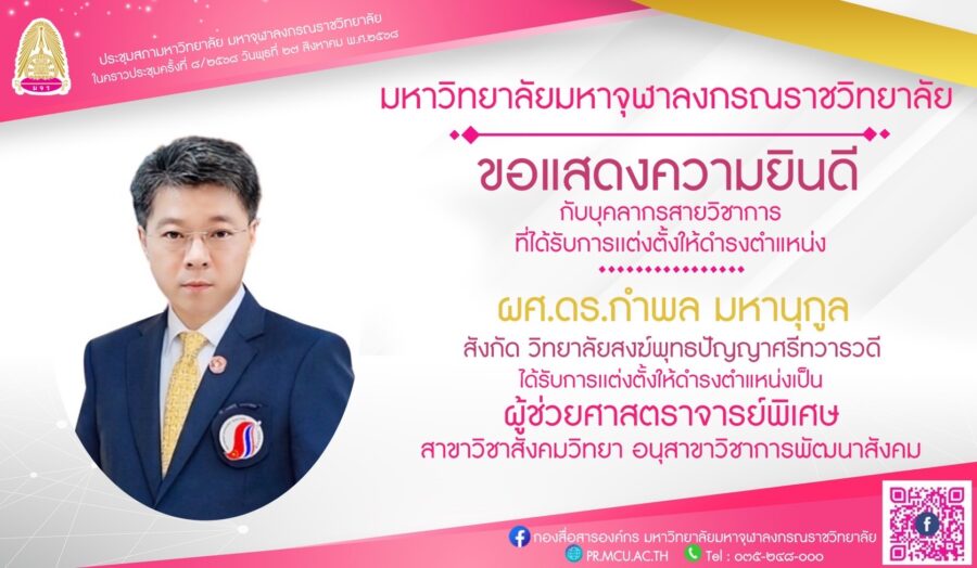 ไม่มีหมวดหมู่ “ดร.กำพล มหานุกูล รับแต่งตั้ง ‘ผู้ช่วยศาสตราจารย์พิเศษ’ สาขาสังคมวิทยา มจร.” 18 เมษายน 2026 1 FacebookTwitterWhatsAppTelegramLINE ประธานบริหาร นสพ อปทนิวส์ และนายกสมาคมผู้สื่อข่าวไทยจีน ดร กำพล มหานุกูล ได้รับการแต่งตั้งเป็นผู้ช่วยศาศตราจารย์ พิเศษ สาขาวิชาสังคมวิทยา อนุสาขาวิชาพัฒนาสังคม จาก มหาวิทยาลัยมหาจุฬากรณราชวิทยาลัย